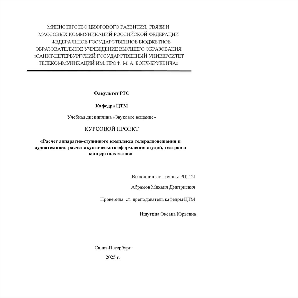 Кафедра цифрового телевидения и метрологии (ЦТМ)Задание на курсовое проектирование по дисциплине «Звуковое вещание» на тему