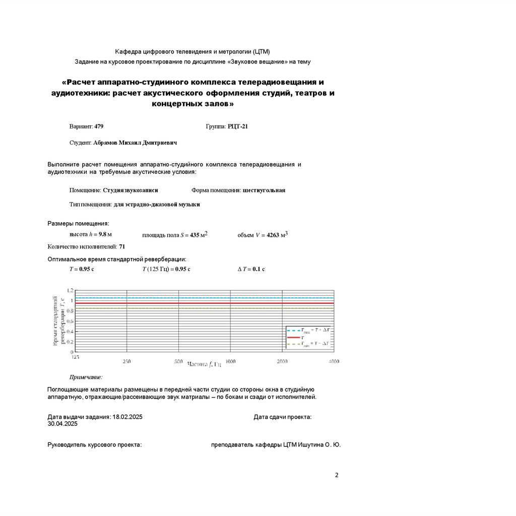 Расчет аппаратно-студийного комплекса телерадиовещания и аудиотехники: расчет акустического оформления студий