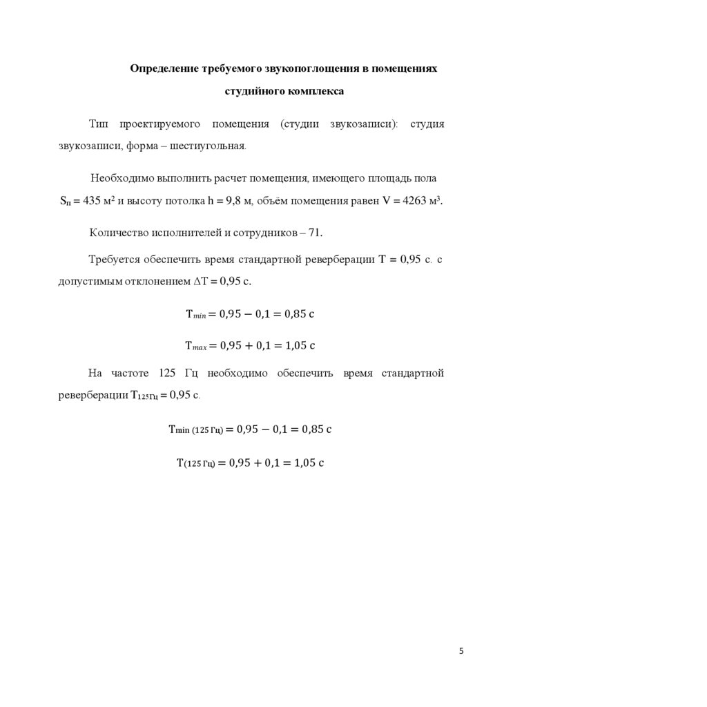 Определение требуемого звукопоглощения в помещенияхстудийного комплекса