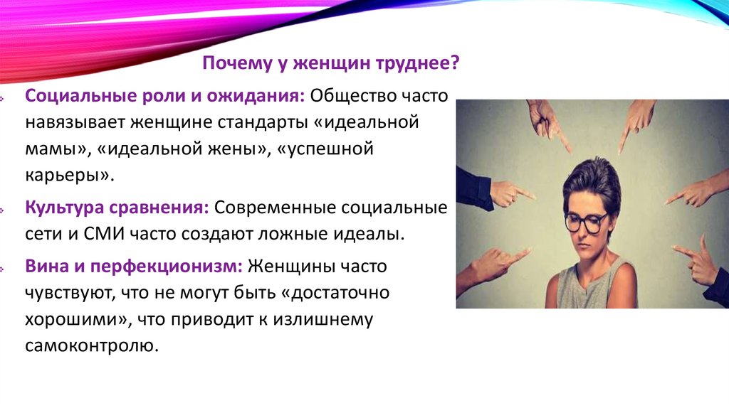Почему у женщин труднее?Социальные роли и ожидания: Общество часто