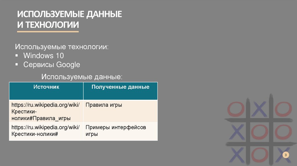 ИСПОЛЬЗУЕМЫЕ ДАННЫЕИ ТЕХНОЛОГИИ