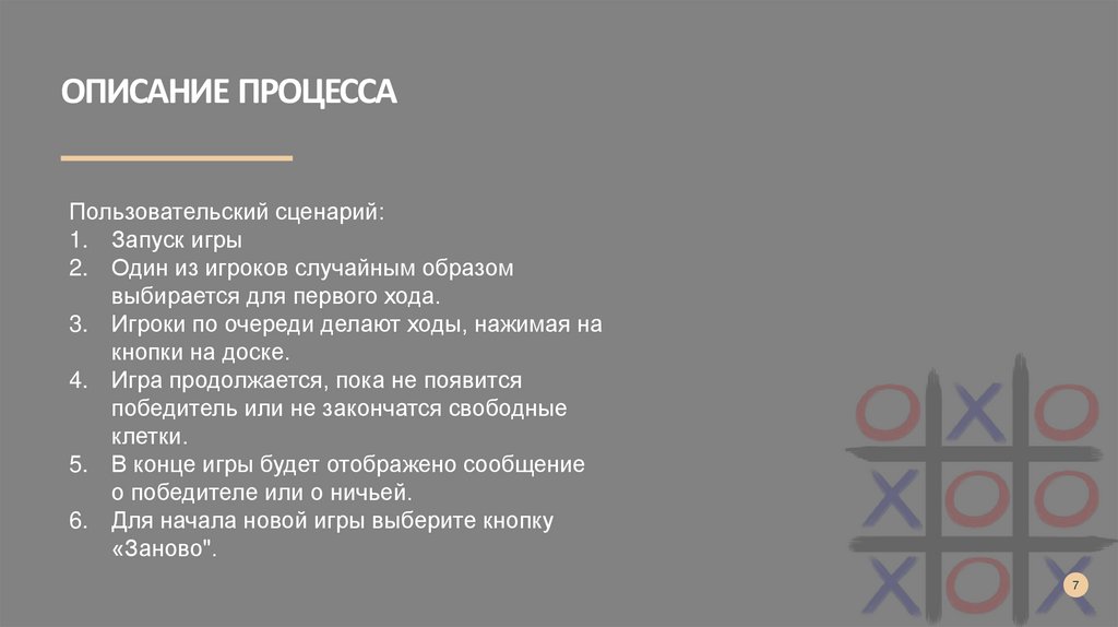 ОПИСАНИЕ ПРОЦЕССАПользовательский сценарий: