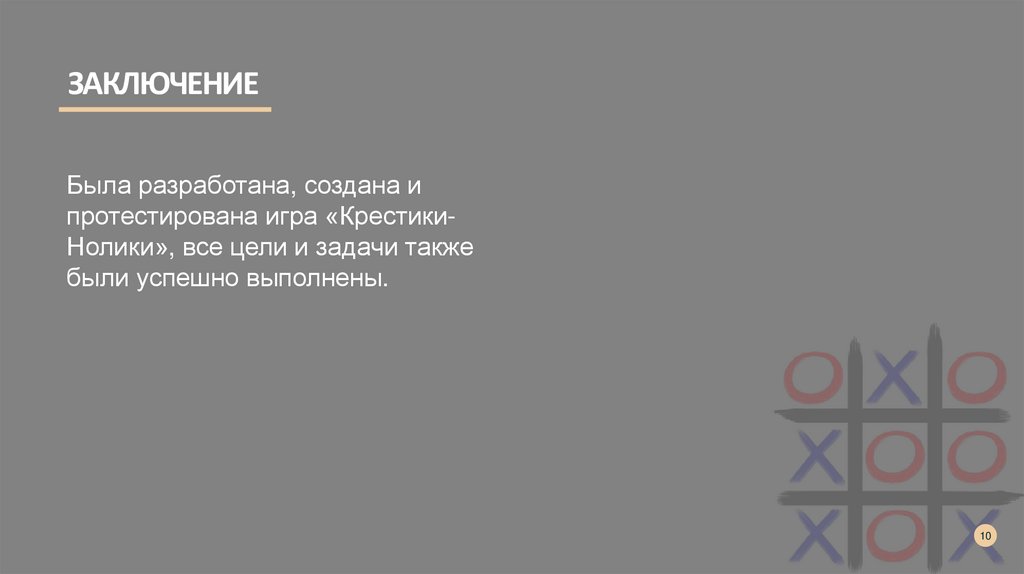 протестирована игра «КрестикиНолики», все цели и задачи также