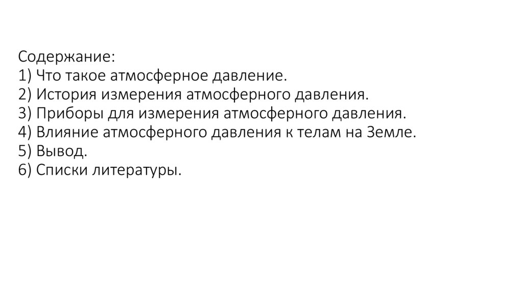 3. Содержание: 1) Что такое атмосферное давление. 2) История измерения атмосферного давления. 3) Приборы для измерения
