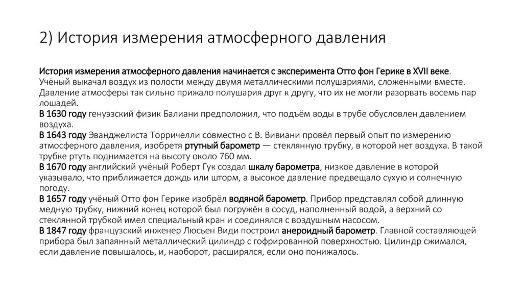 5. 2) История измерения атмосферного давления История измерения атмосферного давления начинается с эксперимента Отто фон Герике в