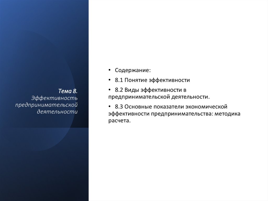 1. Тема 8. Эффективность предпринимательской деятельности