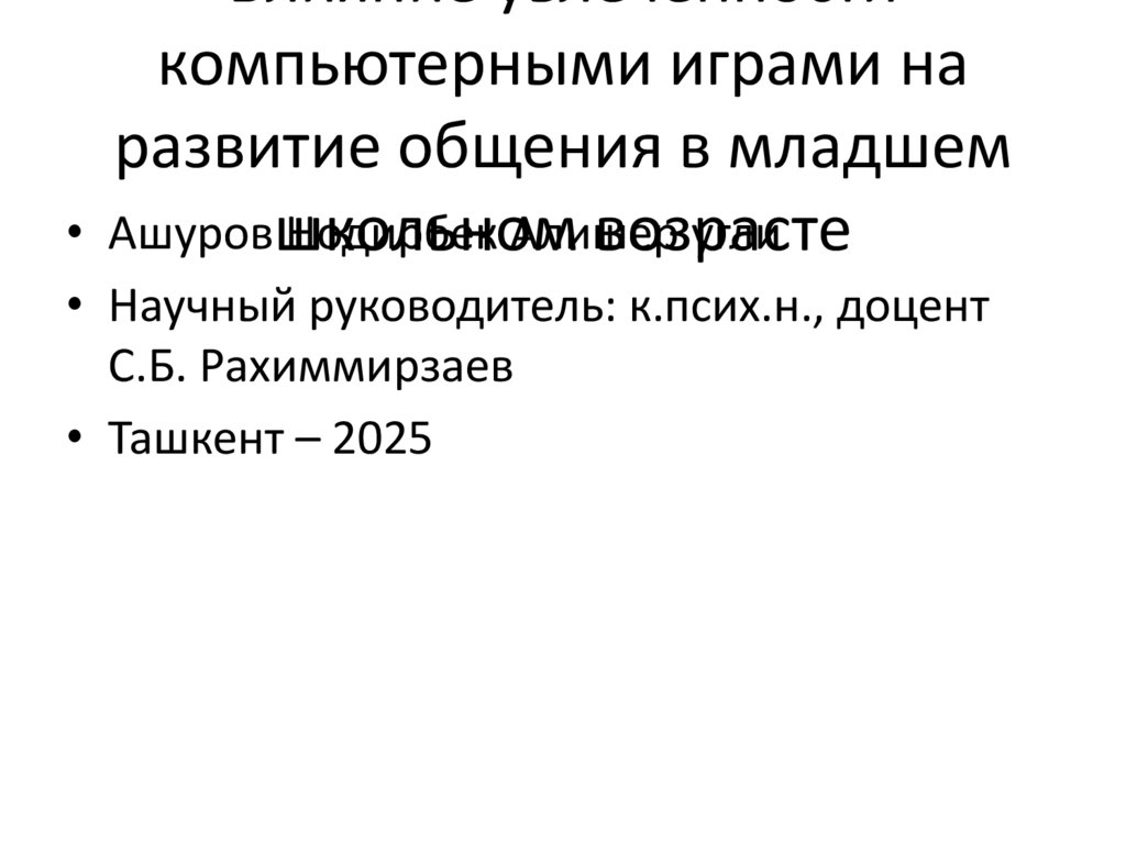 Влияние увлечённости компьютерными играми на развитие общения в младшем возрасте