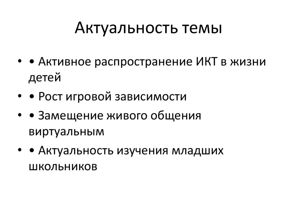 Актуальность темы• • Активное распространение ИКТ в жизни