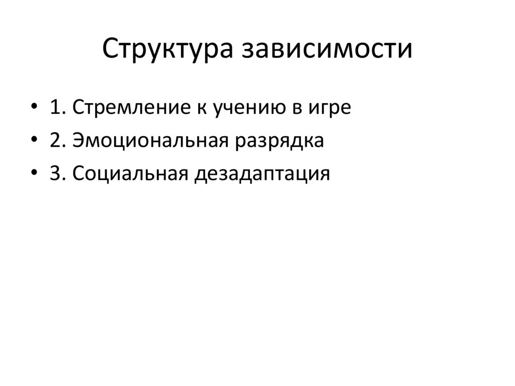 Структура зависимости• 1. Стремление к учению в игре