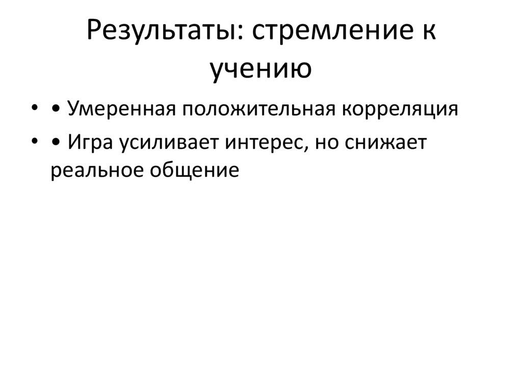 • 1. Стремление к учению в игре влияет на
