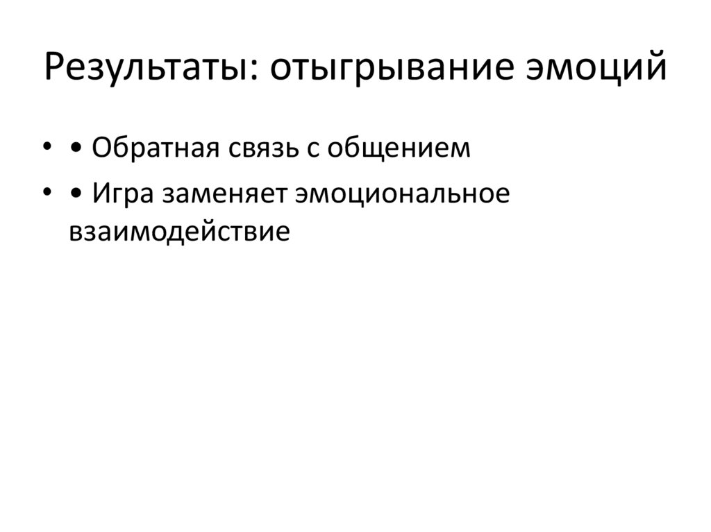 Результаты: отыгрывание эмоций• • Обратная связь с общением