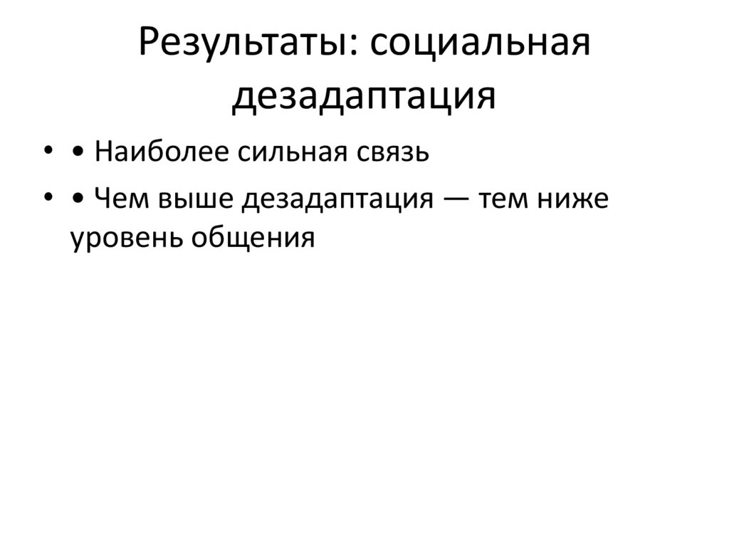 Результаты: социальнаядезадаптация