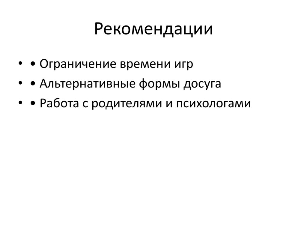 Рекомендации• • Ограничение времени игр