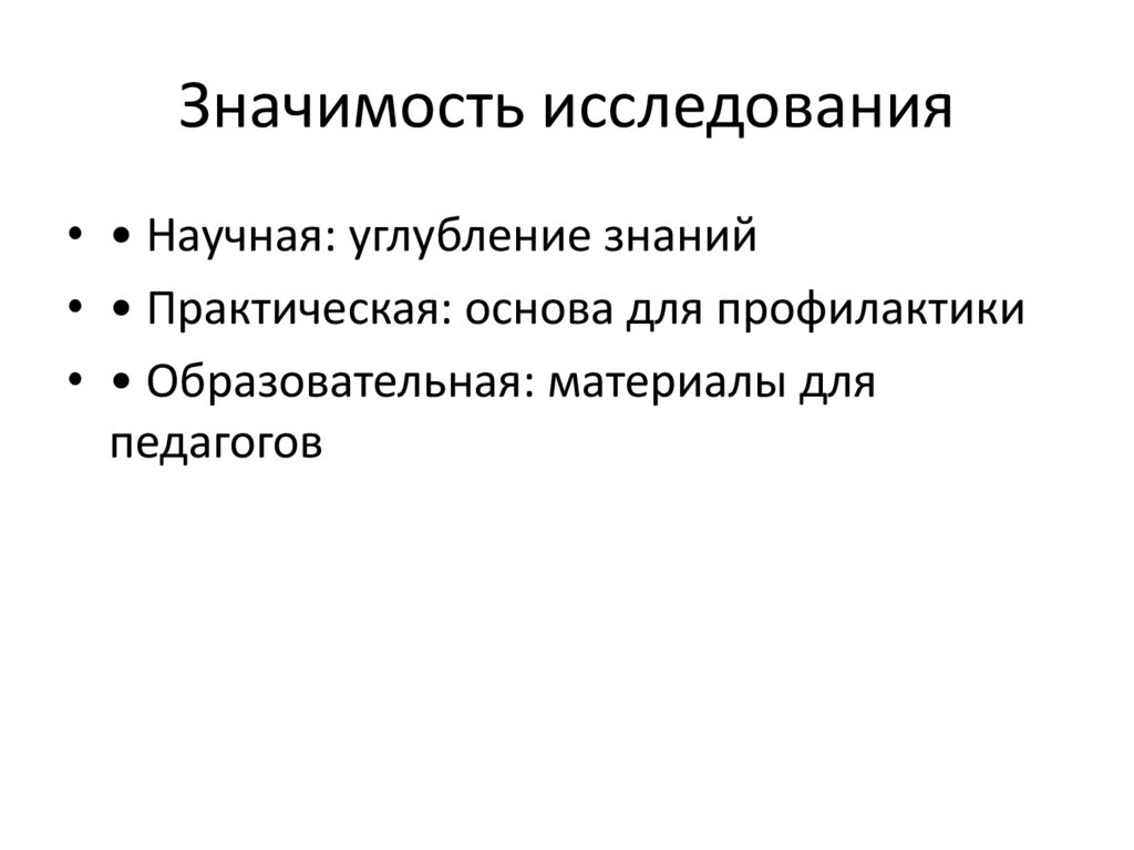 Значимость исследования• • Научная: углубление знаний