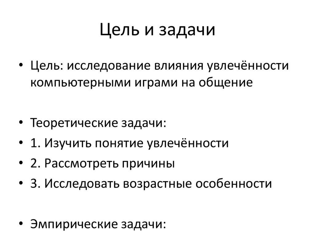 Цель и задачи• Цель: исследование влияния увлечённости