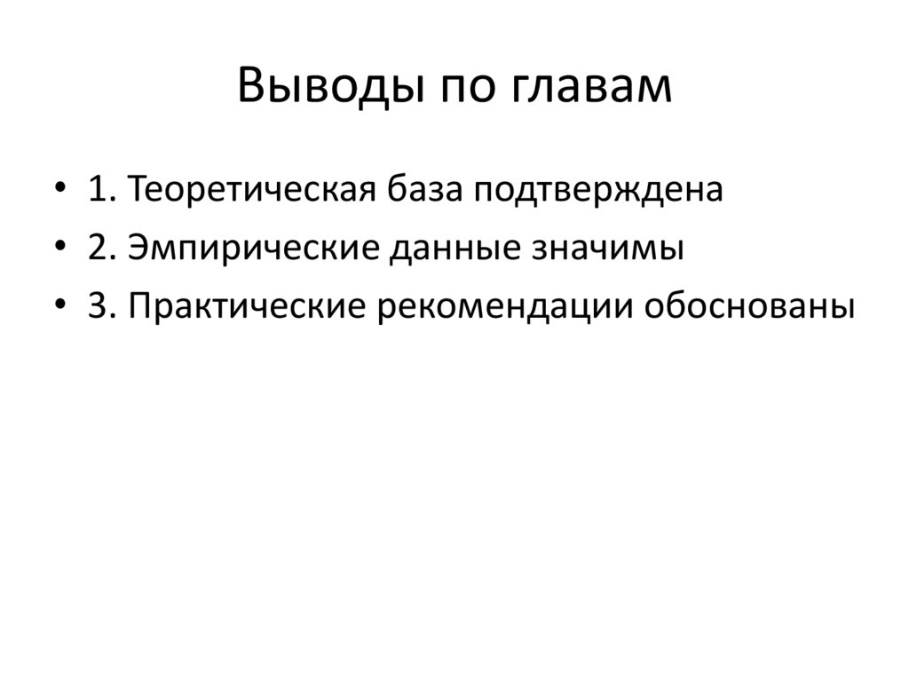 Выводы по главам• 1. Теоретическая база подтверждена