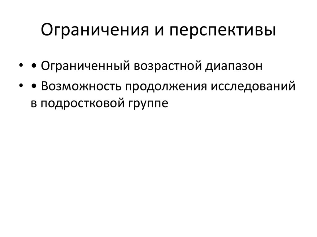 Ограничения и перспективы• • Ограниченный возрастной диапазон