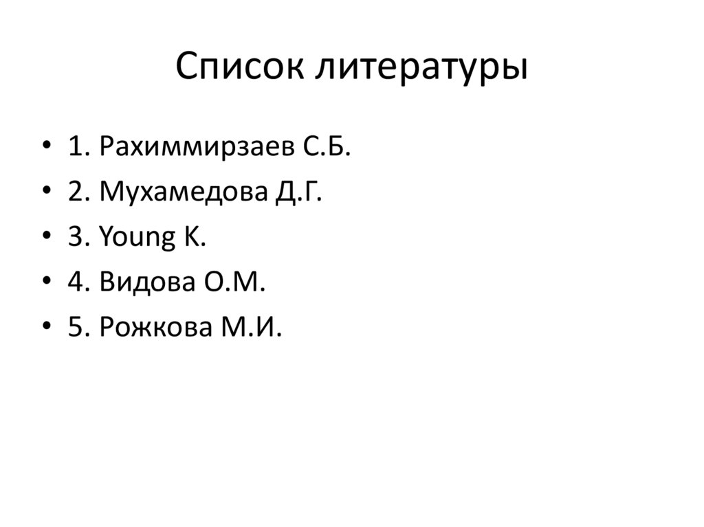 Список литературы• 1. Рахиммирзаев С.Б.
