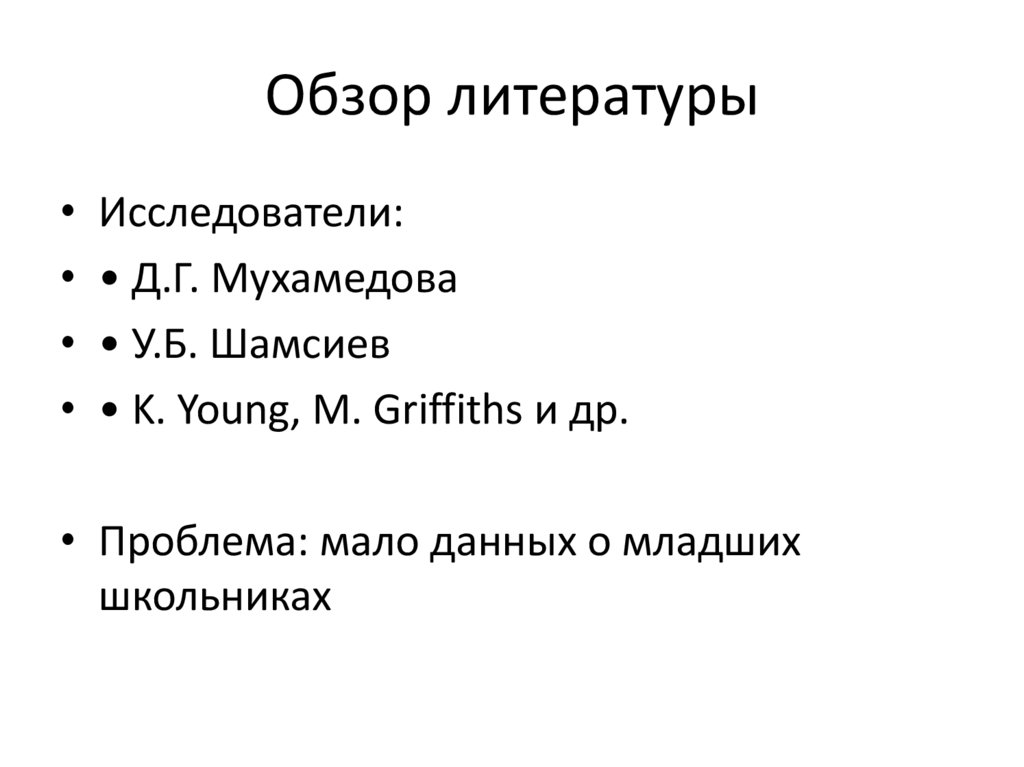 Обзор литературы• Исследователи: