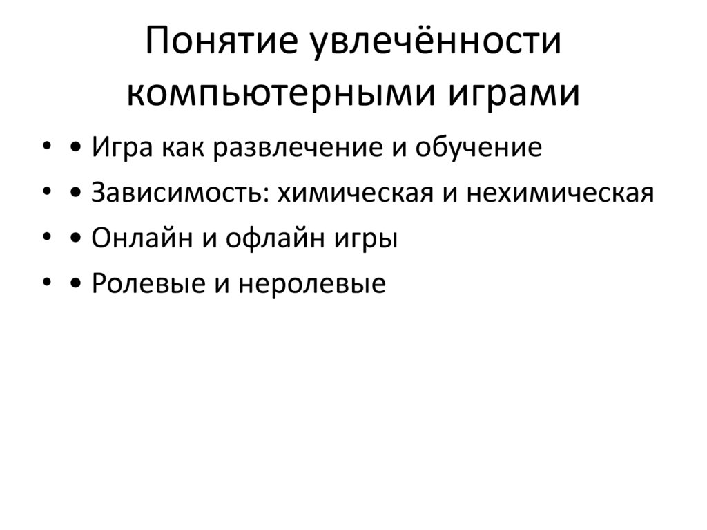 Понятие увлечённостикомпьютерными играми