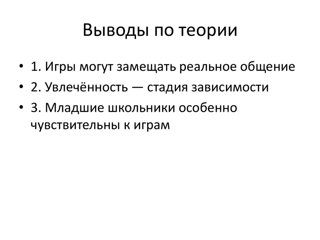 Выводы по теории• 1. Игры могут замещать реальное общение