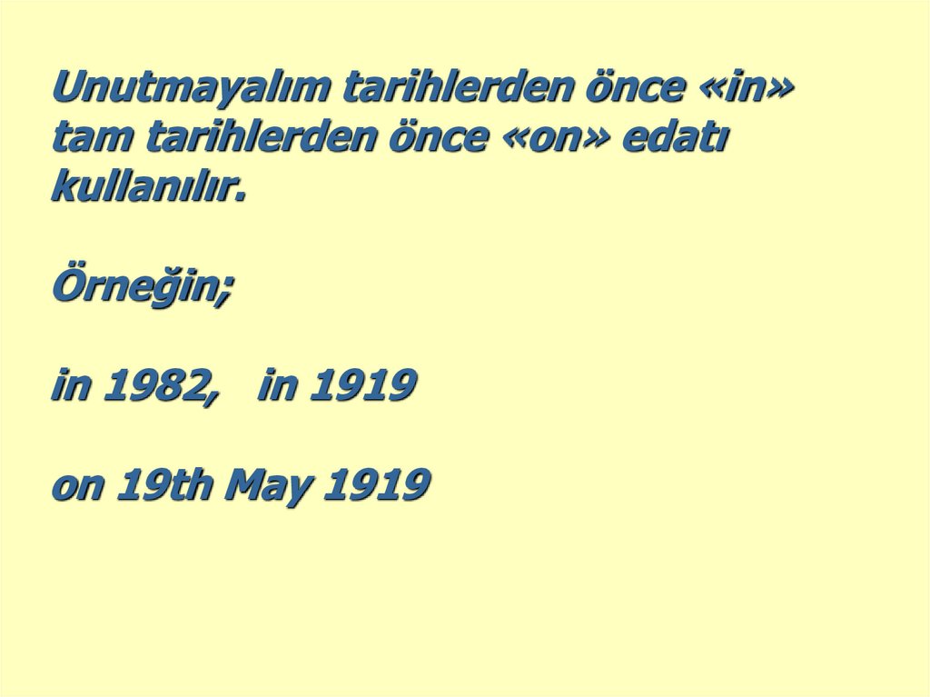 Unutmayalım tarihlerden önce «in»tam tarihlerden önce «on» edatı