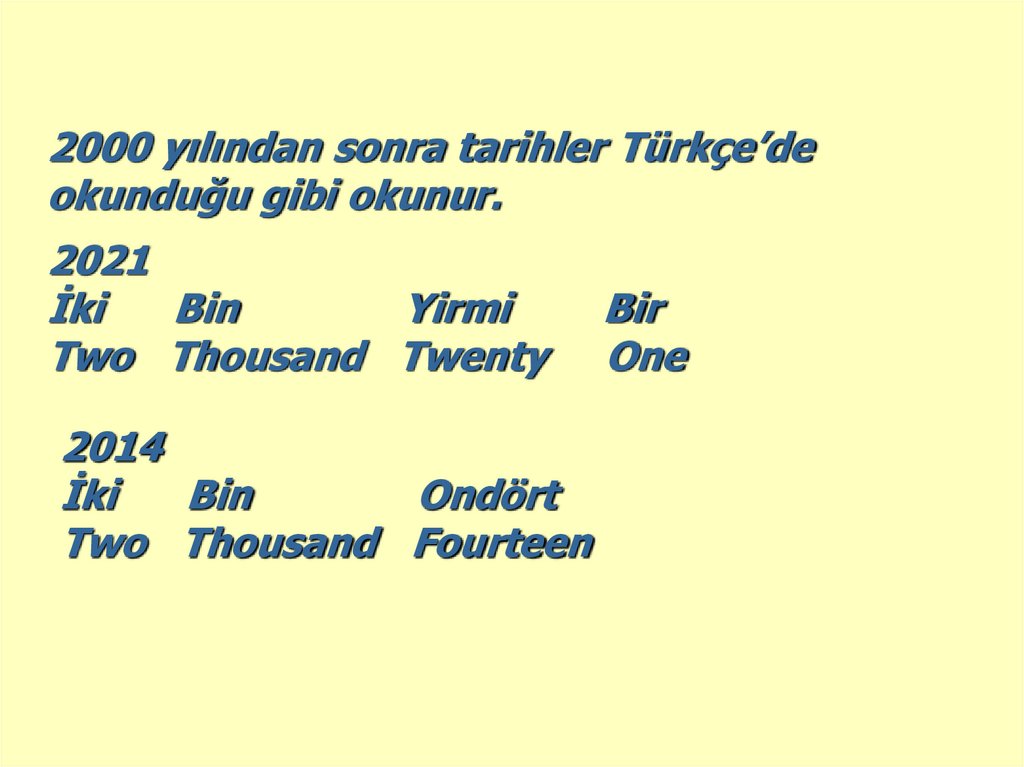 2000 yılından sonra tarihler Türkçe’deokunduğu gibi okunur.