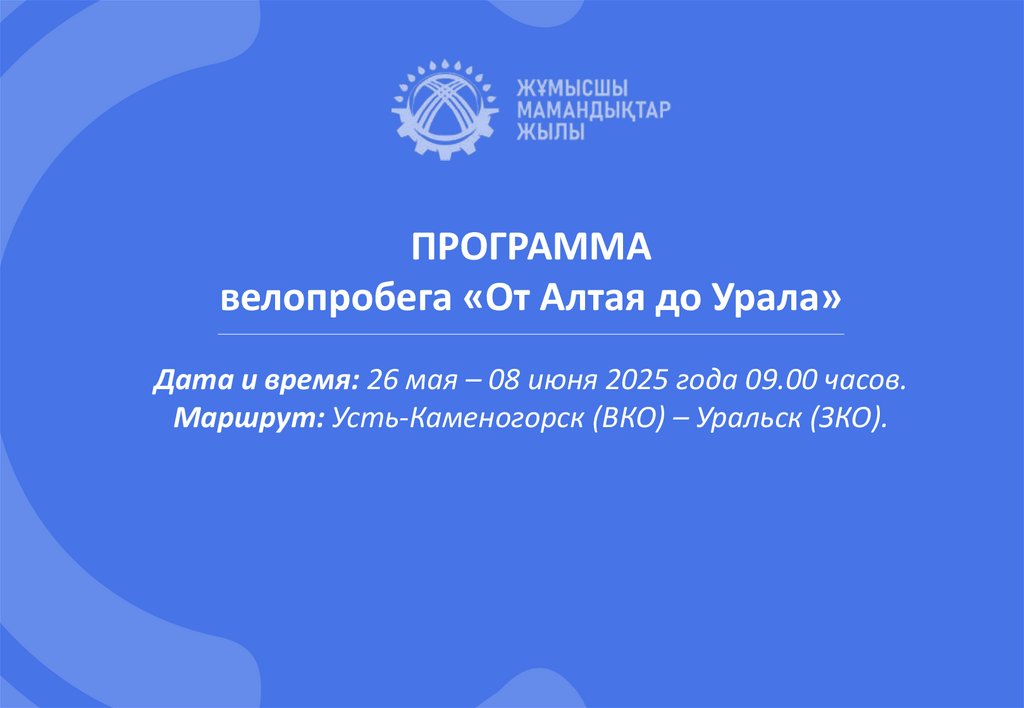 ПРОГРАММАвелопробега «От Алтая до Урала»