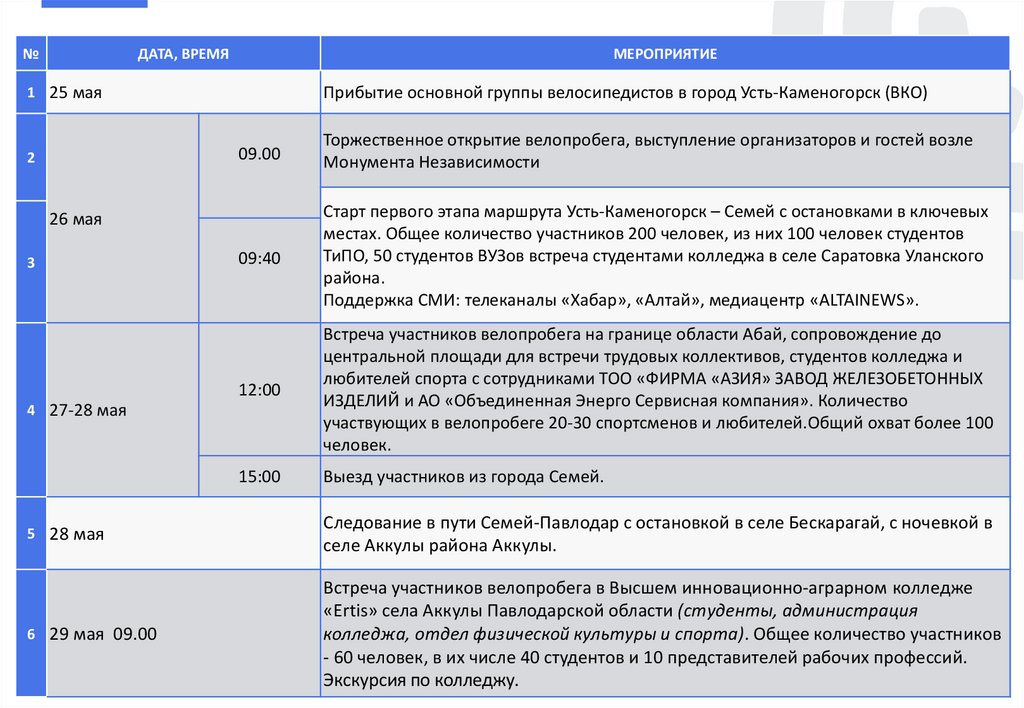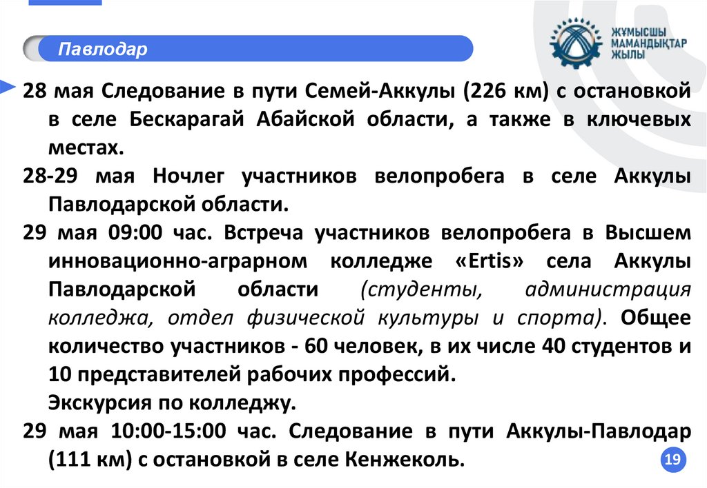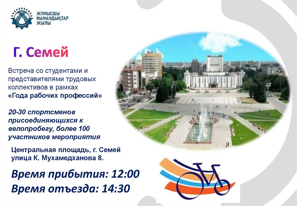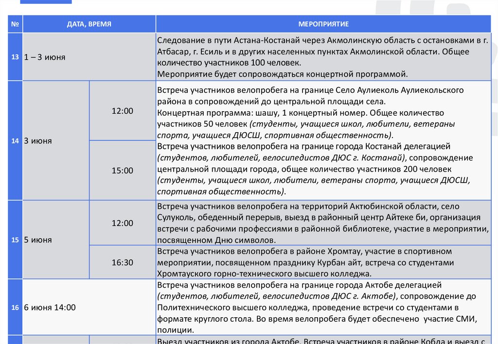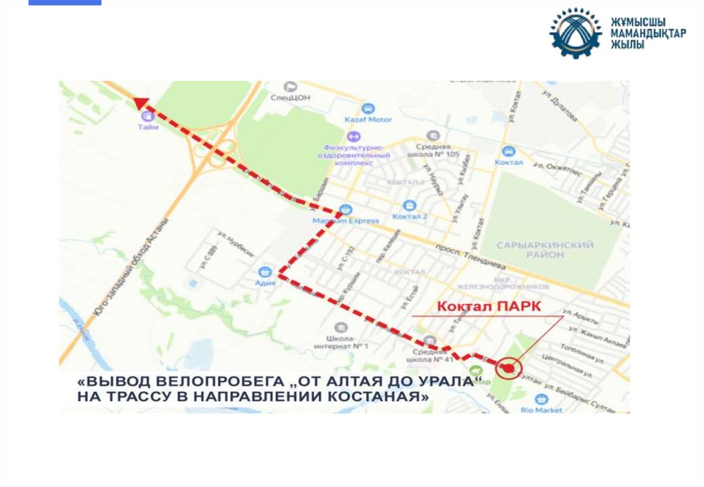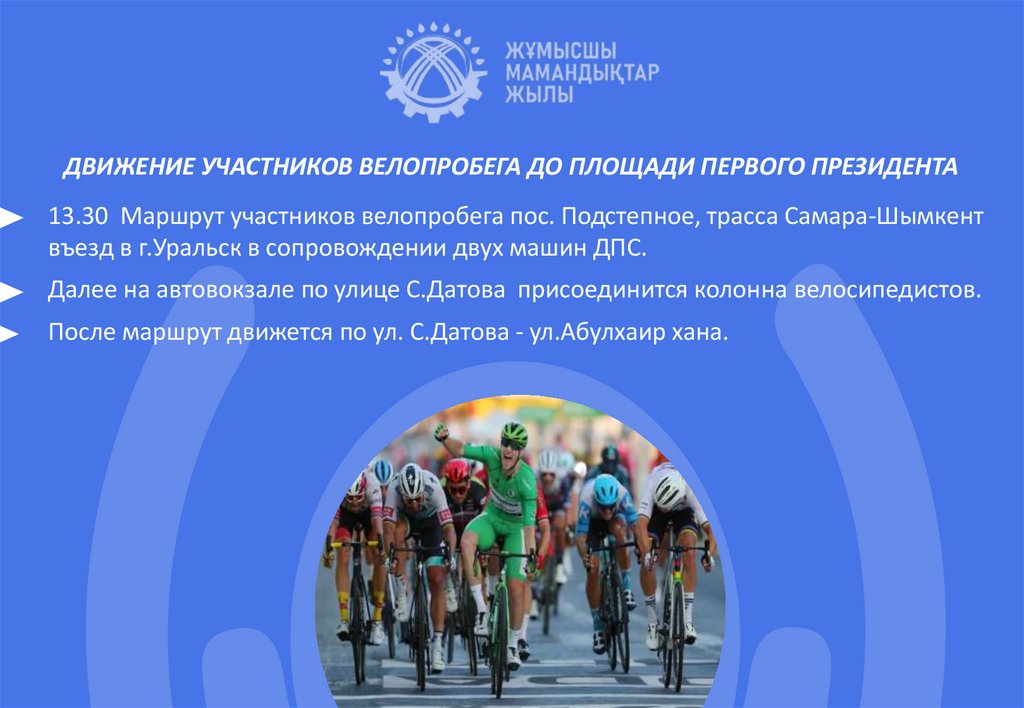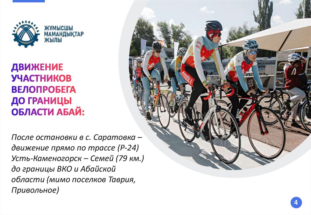 (студентов, любителей, велосипедистов ДЮС г. Костанай), сопровождение
