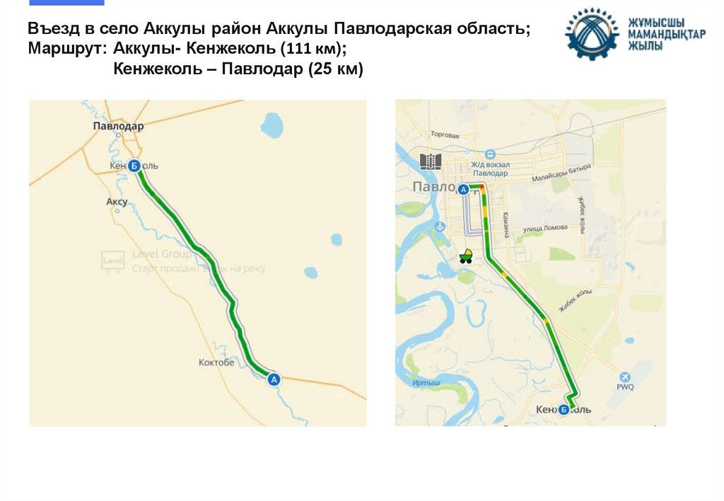 Следование в пути Аккулы-Павлодар (111 км) с остановкой в селе Кенжеколь.