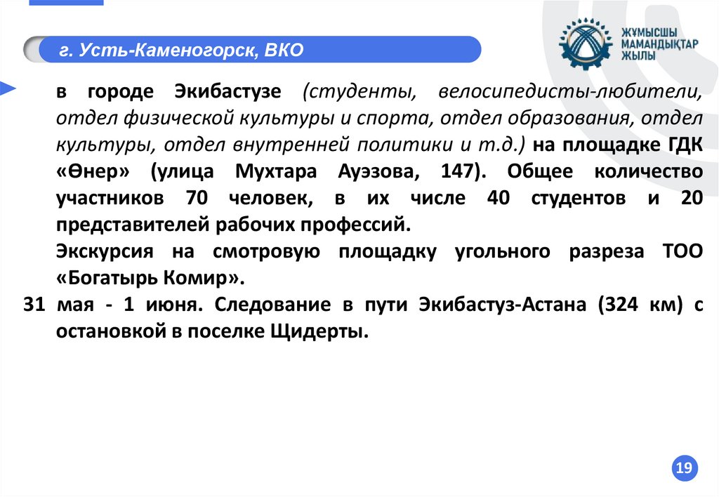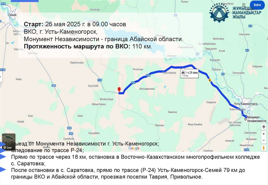 Старт первого этапа маршрута Усть-Каменогорск – Семей с остановками в ключевых
