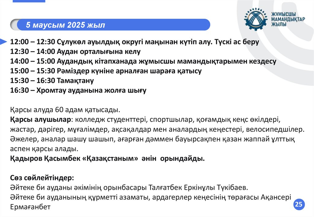 Жұмысшы мамандықтар жылын атапөтуге байланысты