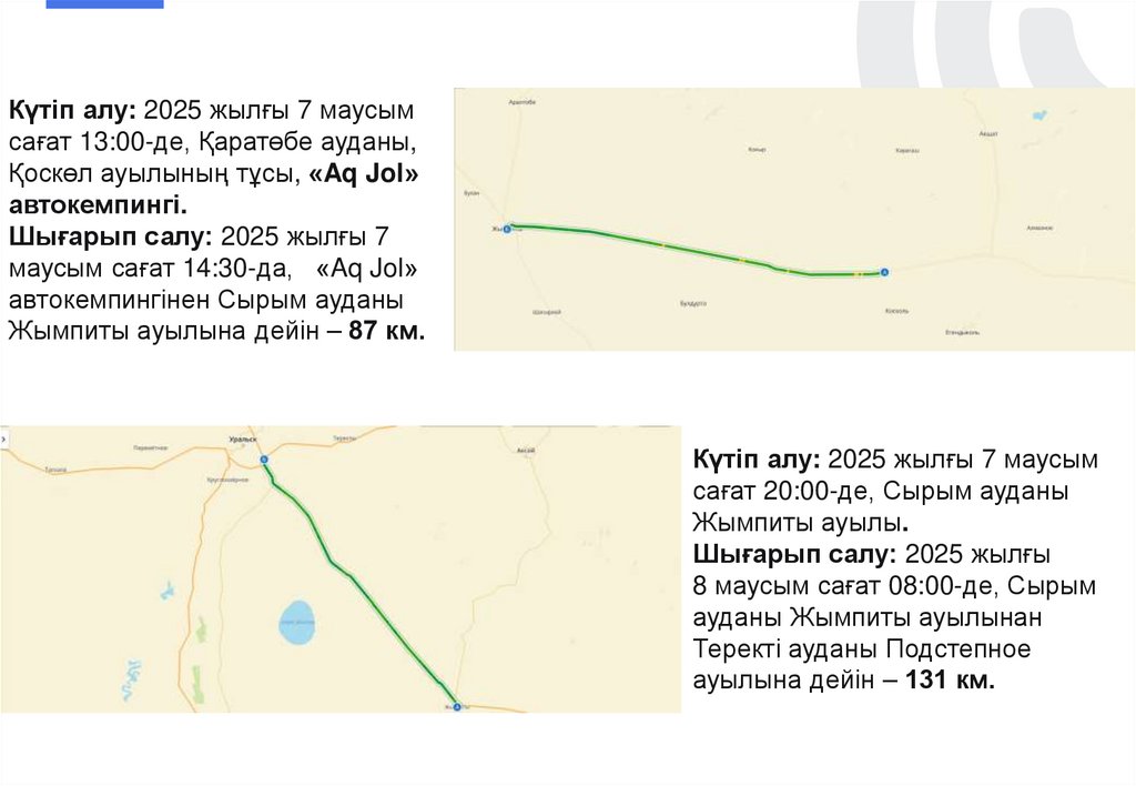 7 маусым 2025 жыл13:00 – 14:30 Шымкент-Самара тас жолының бойында Қаратөбе ауданының