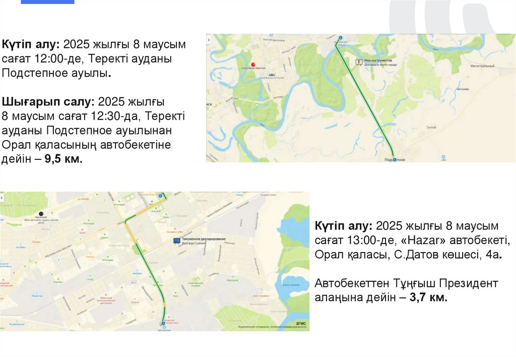 12:30 – Подстепное ауылынан Орал қаласына жол жүру. Автовокзал тұсынан жас