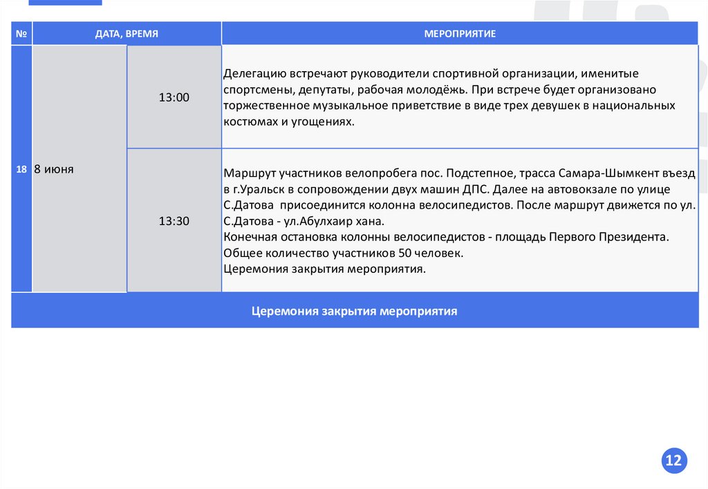ПРОГРАММА ЗАКРЫТИЯмероприятия велопробега