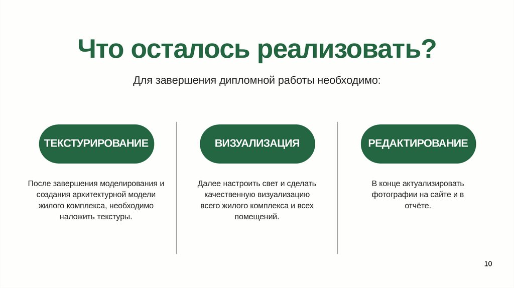 Что осталось реализовать?Для завершения дипломной работы необходимо: