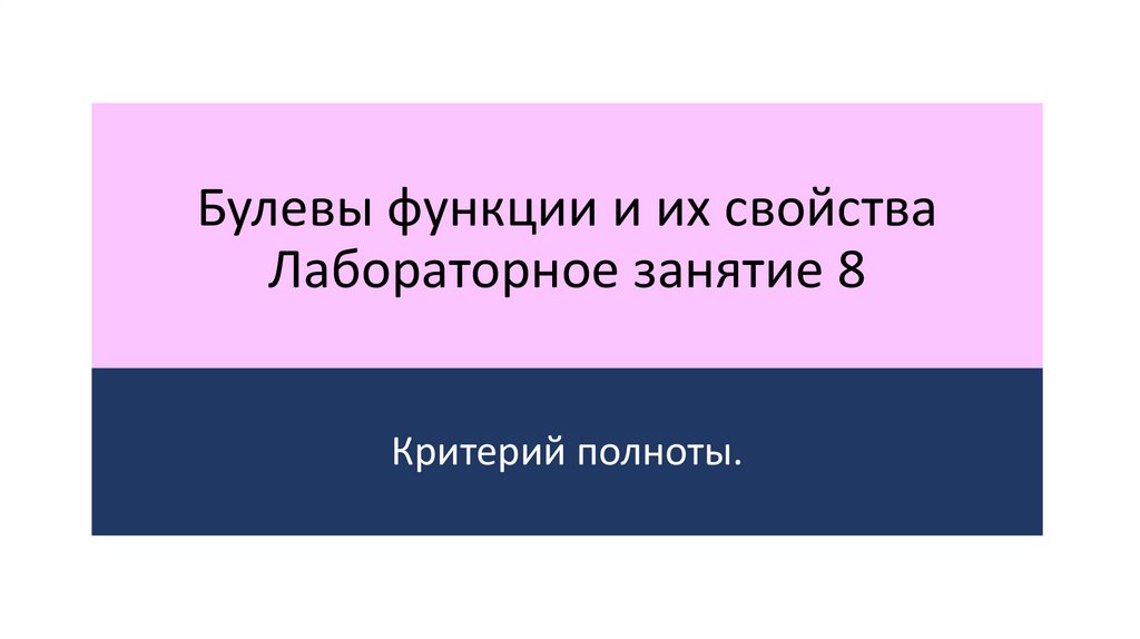 1. Булевы функции и их свойства Лабораторное занятие 8