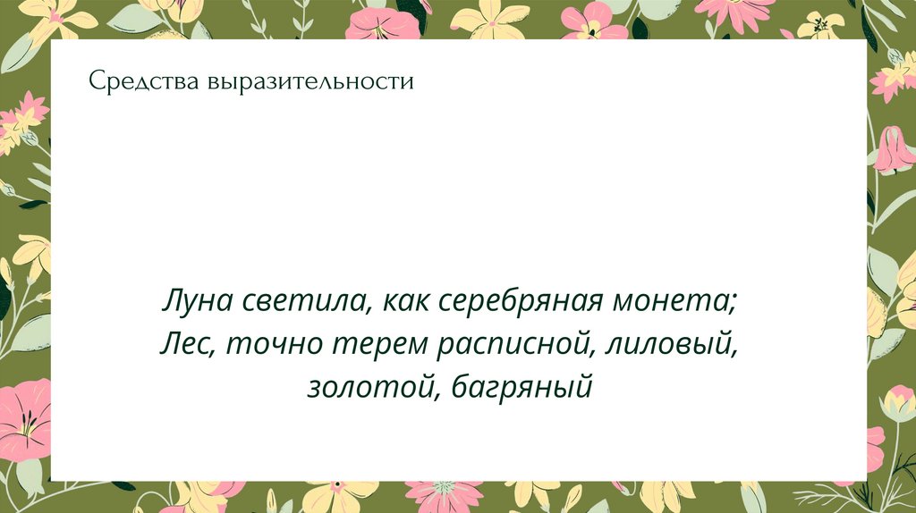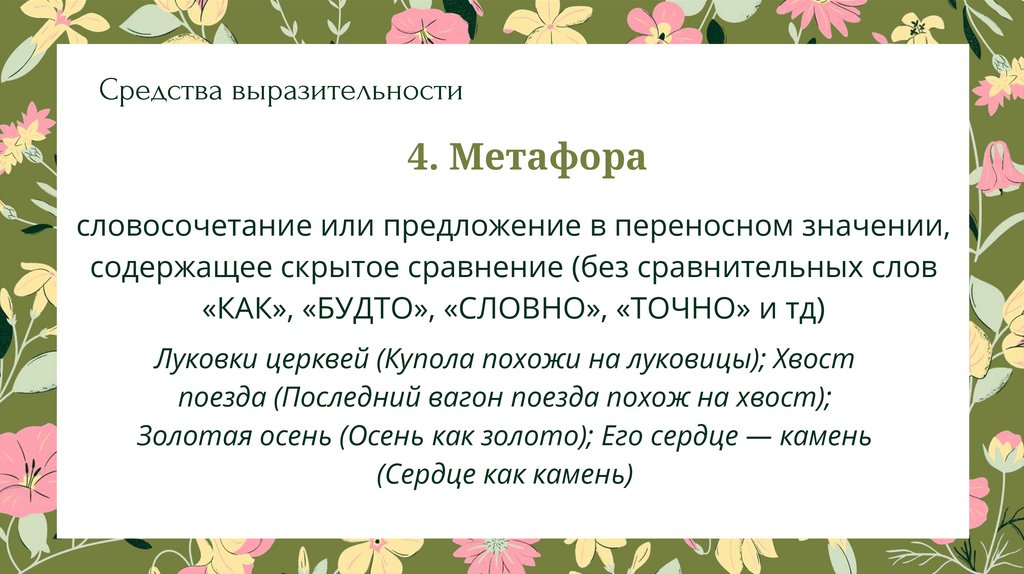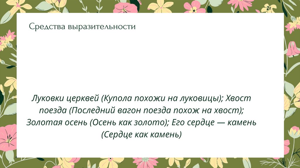 Средства выразительностиЛуковки церквей (Купола похожи на луковицы); Хвост