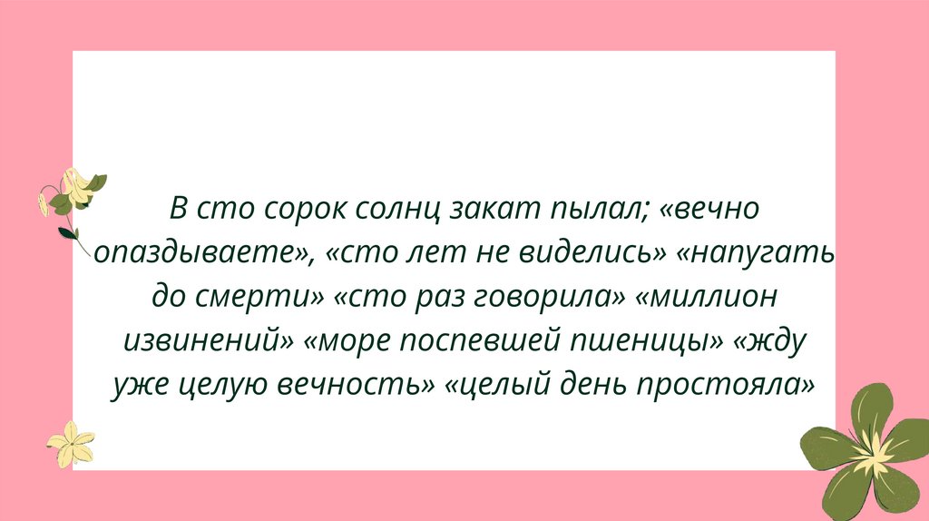В сто сорок солнц закат пылал; «вечноопаздываете», «сто лет не виделись» «напугать