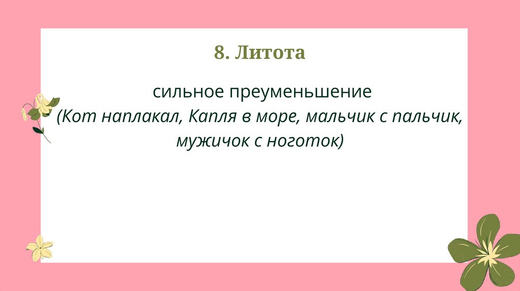 (Кот наплакал, Капля в море, мальчик с пальчик,мужичок с ноготок)
