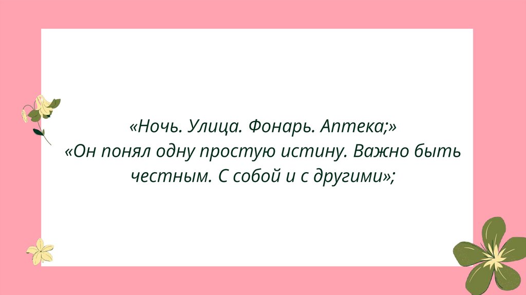 «Ночь. Улица. Фонарь. Аптека;»«Он понял одну простую истину. Важно быть