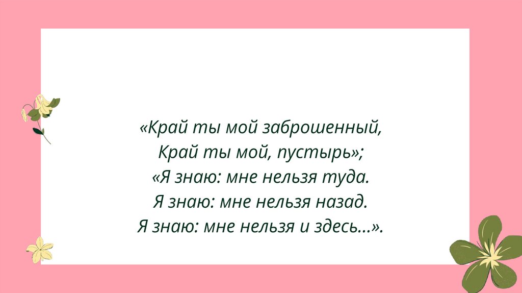 «Край ты мой заброшенный,Край ты мой, пустырь»;