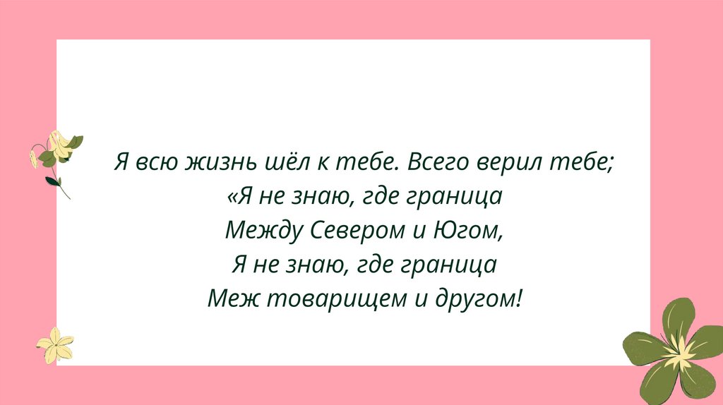 Я всю жизнь шёл к тебе. Всего верил тебе;«Я не знаю, где граница