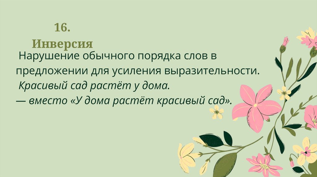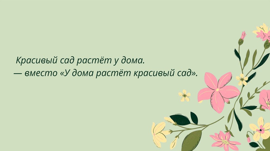 Красивый сад растёт у дома.— вместо «У дома растёт красивый сад».