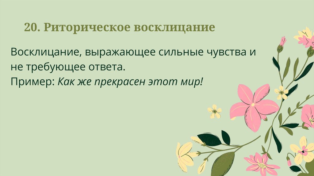 20. Риторическое восклицаниеВосклицание, выражающее сильные чувства и
