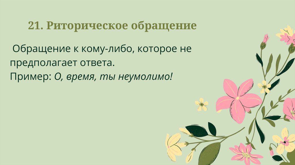 21. Риторическое обращениеОбращение к кому-либо, которое не