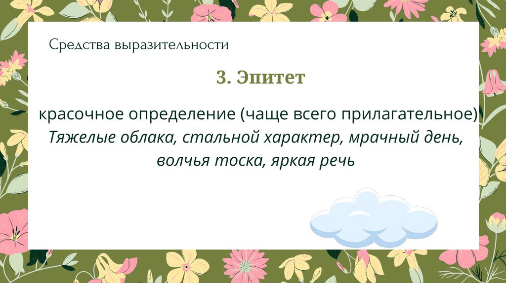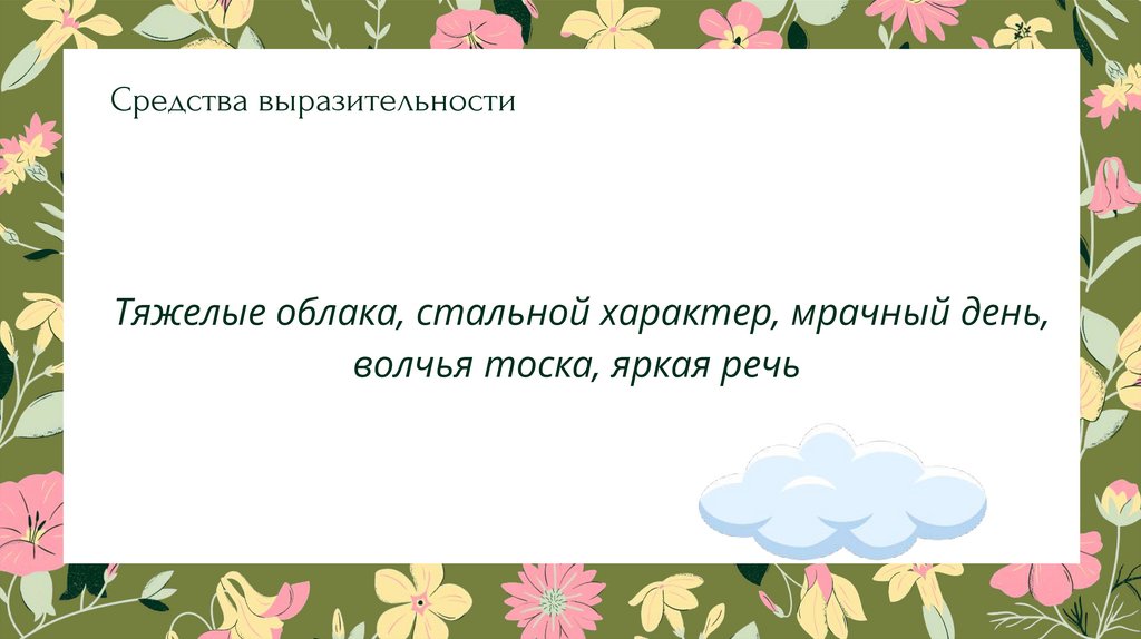 Средства выразительностиТяжелые облака, стальной характер, мрачный день,