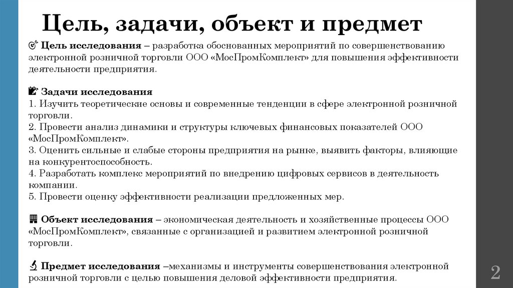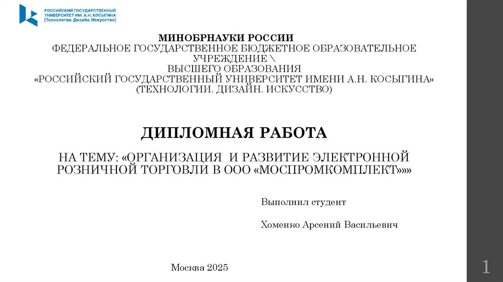 Организация и развитие электронной розничной торговли в ООО «Моспромкомплект»