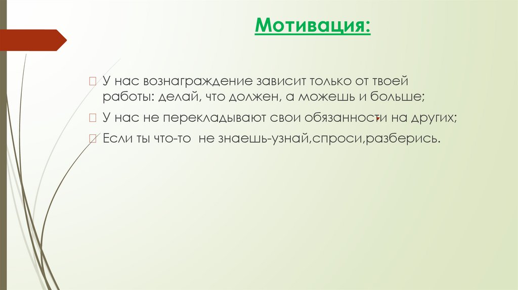 У нас вознаграждение зависит только от твоей работы: делай, что должен, а может и больше;