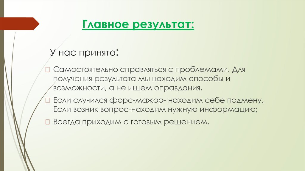 Самостоятельно справляться с проблемами. Для получения результата мы находим способы